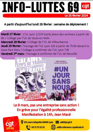Info-Luttes du 26 février 2024 Tweeter Partager Partager Cher-e Camarade, Tu trouveras ICI l’Info-Luttes du jour L’UD a décidé d’impulser une semaine de déploiement à partir d’aujourd’hui, pour la construction d’un grand 8 mars ! Imprimer cet article Télécharger cet article 28 février 2024