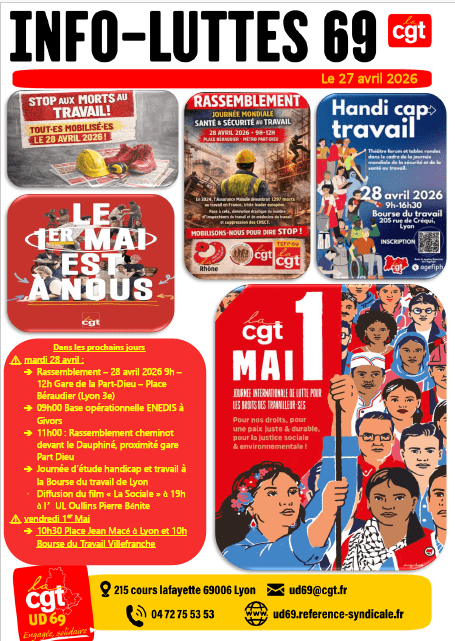 Info-Luttes du 27 avril 2026 Tweeter Partager Partager Cher-e Camarade, Tu trouveras ICI l’Info Luttes du 27 avril 2026 Imprimer cet article Télécharger cet article 27 avril 2026