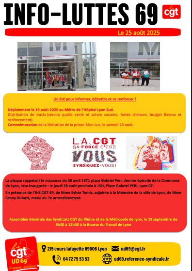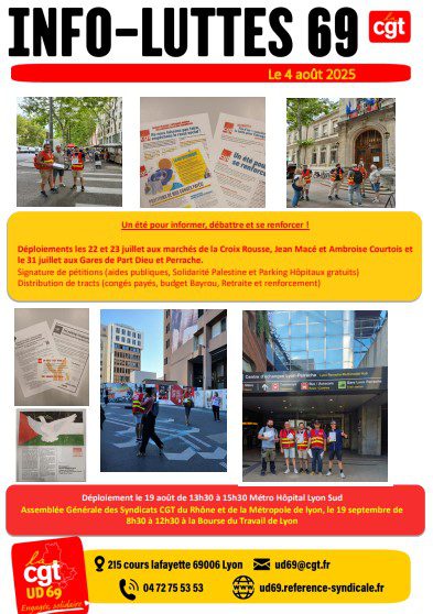 Chèr-e camarade, Tu trouveras ICI le tract de l’UD69 CGT pour la grève et manifestation du 5 juin Rendez vous à 11h Place d’Arsonval 69003 – Métro Grange Blanche // à 17h30 Place du Promenoir à Villefranche.