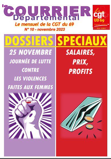 Cher-e Camarade, Tu trouveras ICI Le Courrier Départemental de l’UD CGT 69 – n° 10 – novembre 2023